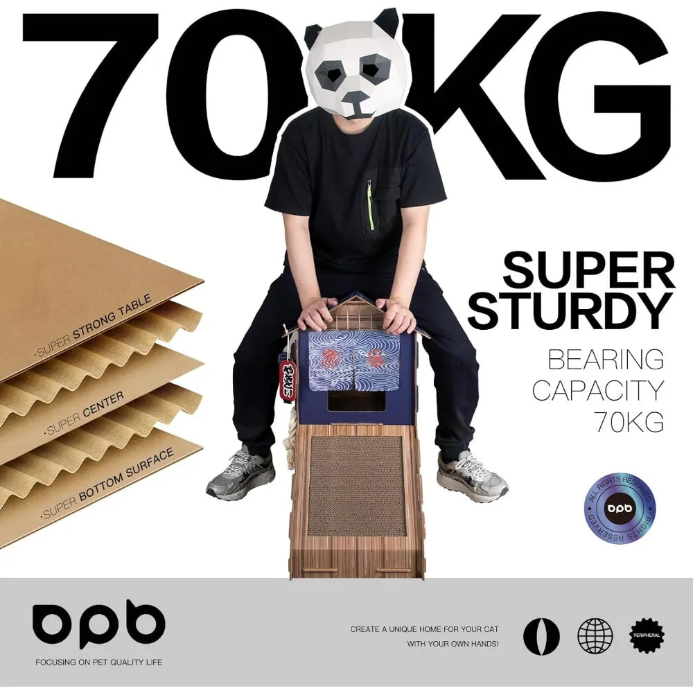 【Sturdy cardboard cat house】Made of 4.5mm high-strength heavy-duty cardboard,combined with scientific construction,it can hold up to 100 pounds,so you can use it with confidence. Again: this cat cardboard house is not made of ordinary cardboard,it is very sturdy.